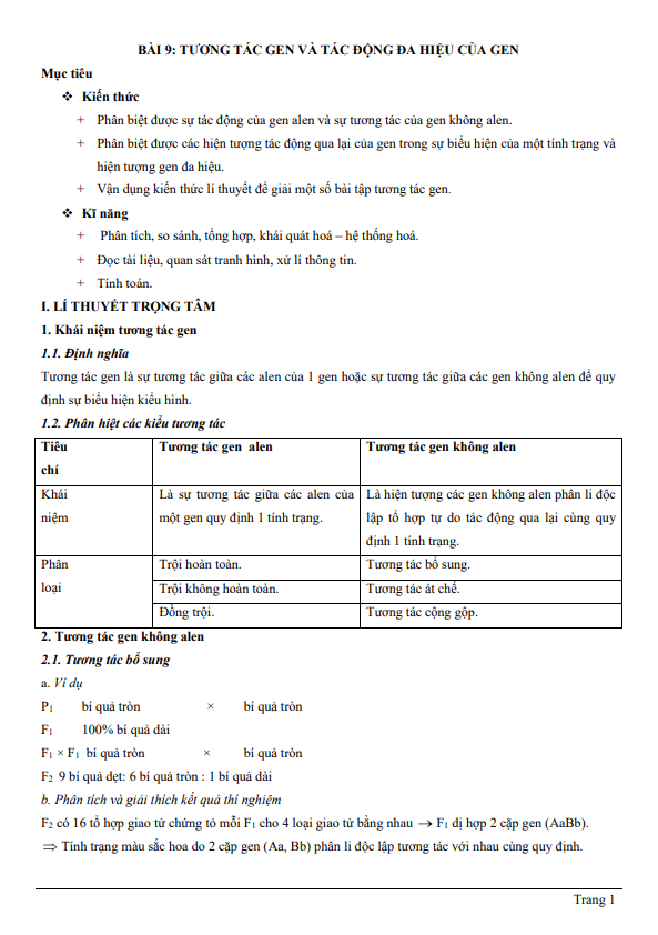 Tài liệu gồm có 43 trang tuyển chọn bài tập trắc nghiệm quy luật di truyền tương tác gen – gen đa hiệu – gen ngoài nhân có đáp án và lời giải chi tiết, với đầy đủ các mức độ: nhận biết, thông hiểu, vận dụng thấp và vận dụng cao; giúp học sinh ôn thi THPT Quốc gia môn Sinh học.