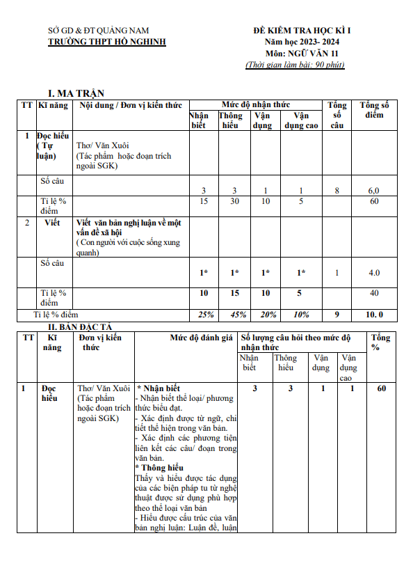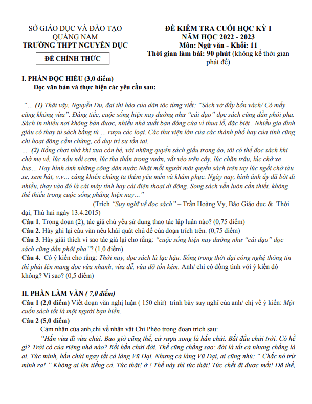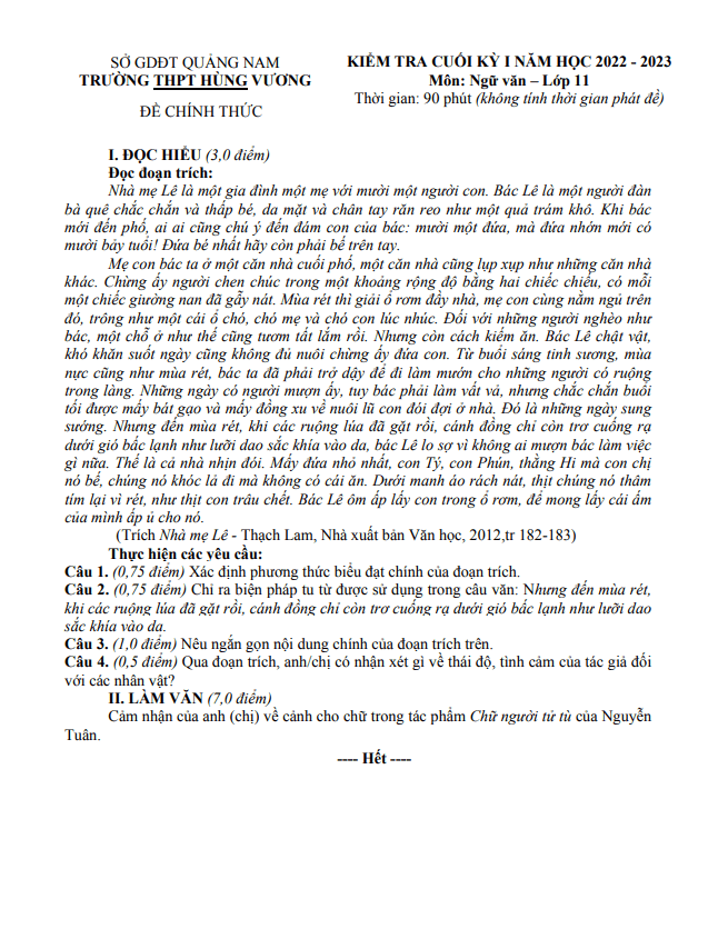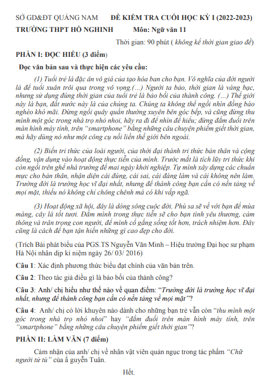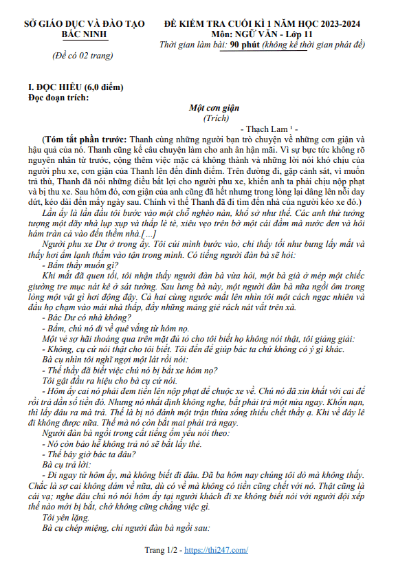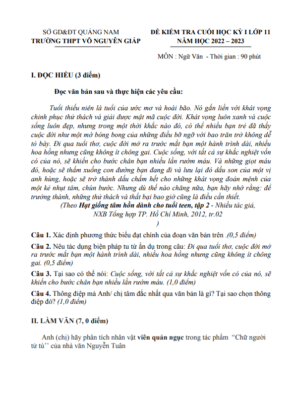 Quý thầy, cô giáo và các em học sinh có thể xem và tải xuống miễn phí các đề thi HK1 Ngữ Văn 11 (học kỳ 1 Ngữ Văn 11) được chia sẻ trên THI247.com.