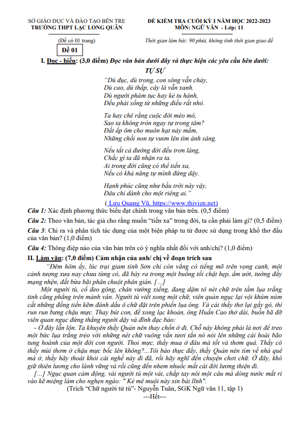 Đề thi HK1 Ngữ Văn 11 (học kỳ 1 Ngữ Văn 11) được THI247.com cập nhật thường xuyên dựa vào nguồn đề sưu tầm từ trang web của các trường, sở và các trang mạng xã hội.