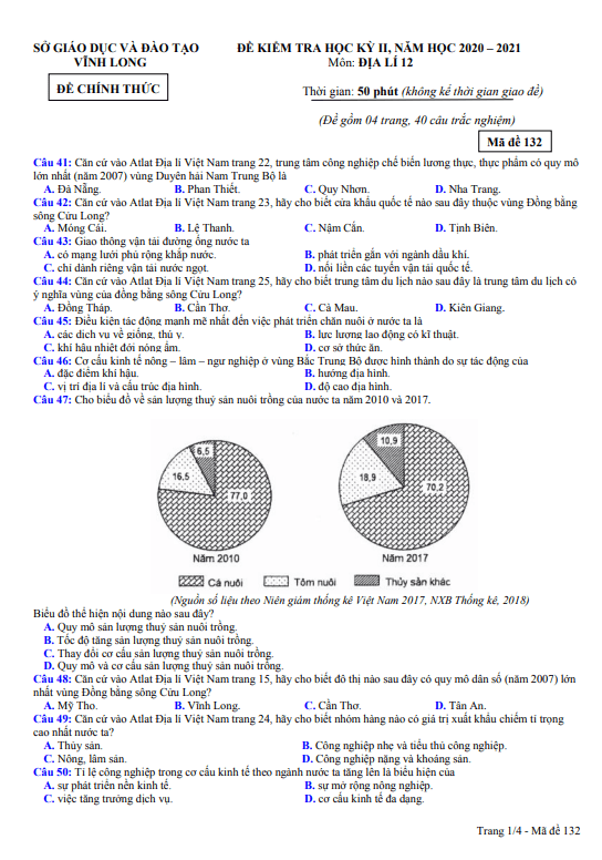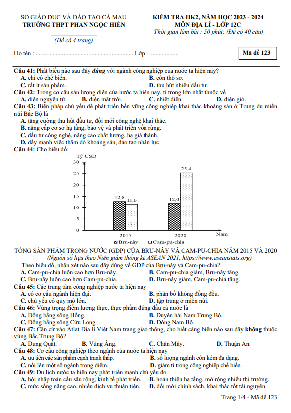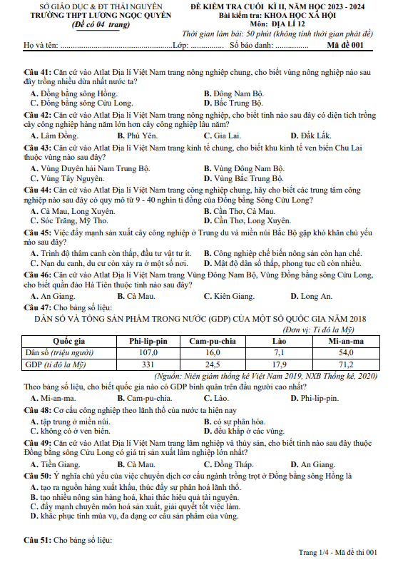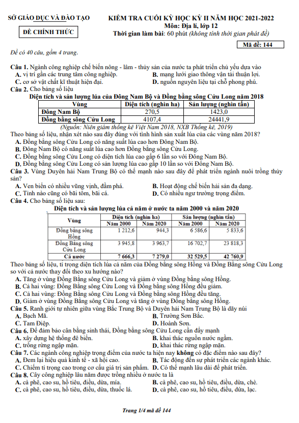 Đề thi HK2 Địa lý 12