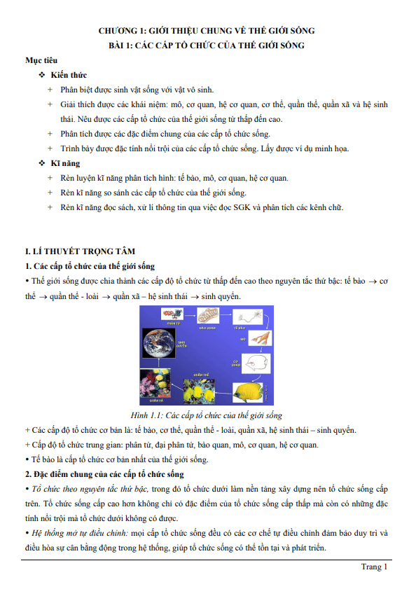 Lý thuyết và bài tập trắc nghiệm các cấp tổ chức của thế giới sống