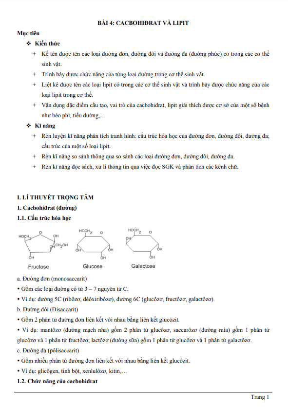 Lý thuyết và bài tập trắc nghiệm cacbohiđrat và lipit