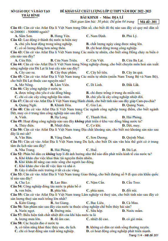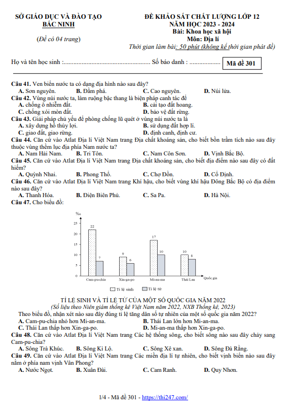 Quý thầy, cô giáo và các em học sinh có thể xem và tải xuống miễn phí các đề thi KSCL Địa lý 12 (khảo sát chất lượng Địa lý 12) được chia sẻ trên THI247.com.