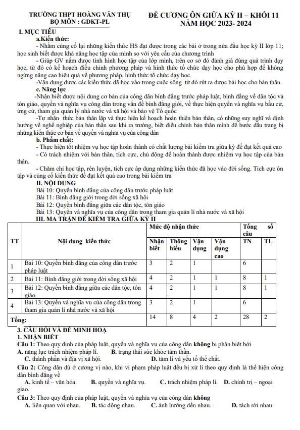 Quý thầy, cô giáo và các em học sinh khối 11 có thể xem và tải xuống miễn phí các tài liệu GDCD 11 (Giáo dục Công dân 11) được chia sẻ trên THI247.com.