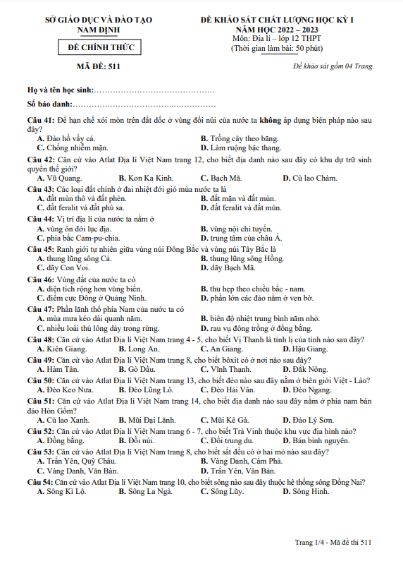 Cuối năm là thời điểm các trường THPT trên toàn quốc chuẩn bị cho kỳ thi cuối học kì 1, trước khi học sinh bước vào kỳ nghỉ lễ Tết Dương Lịch và Tết Âm Lịch. Để chuẩn bị cho kỳ thi HK1 Địa lí 12, ngoài việc ôn tập theo đề cương, học sinh còn cần thử sức với các đề thi để kiểm tra kiến thức bản thân đã tích lũy.