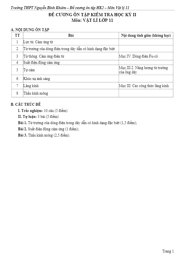 Trích dẫn đề cương ôn tập HK2 Vật lý 11:
