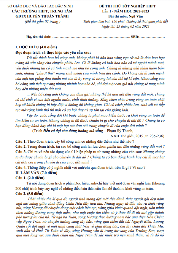 THI247.com sưu tầm và giới thiệu đến bạn đọc nội dung đề thi và bảng đáp án / hướng dẫn giải Đề KSCL Ngữ Văn 12 đầu năm học 2023 – 2024 trường THPT Thuận Thành 1 – Bắc Ninh.