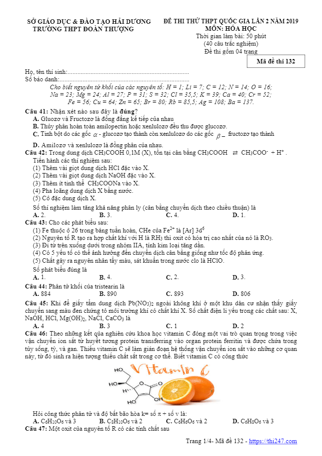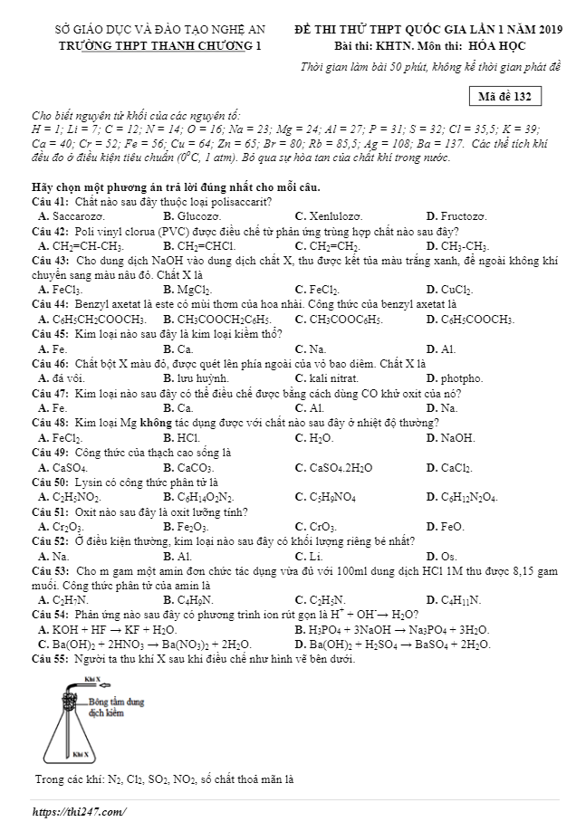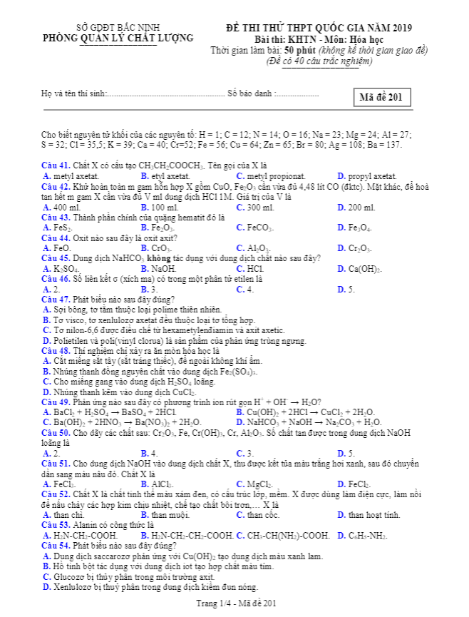 Trích dẫn đề minh họa Hóa học kỳ thi THPT Quốc gia 2019 – Bộ Giáo dục và Đào tạo: