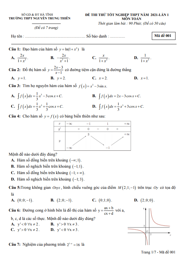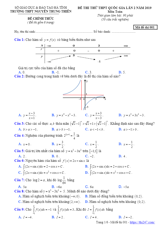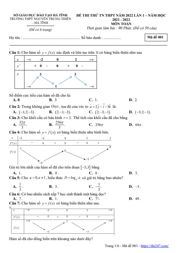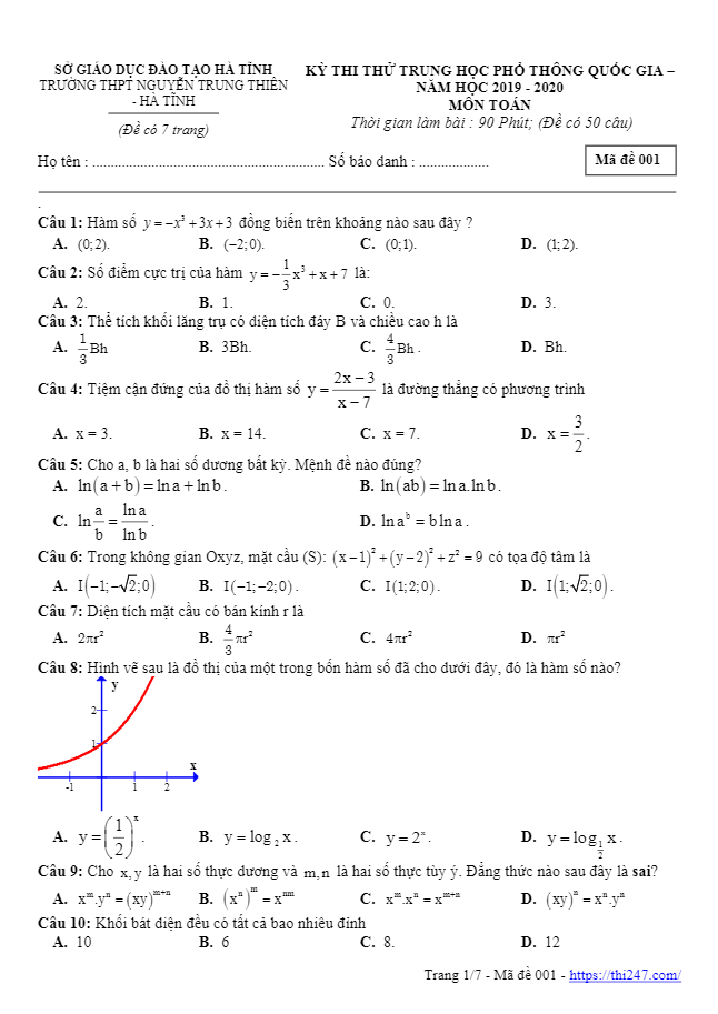 THI247.com chia sẻ đến bạn đọc đề tham khảo kỳ thi tốt nghiệp Trung học Phổ thông năm 2020 môn Toán, mời các bạn cùng tham khảo và thử sức.