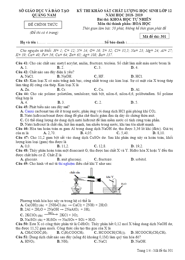 THI247.com chia sẻ đến các em học sinh lớp 12 đề thi định kỳ Hóa học 12 lần 2 năm 2018 – 2019 trường THPT chuyên Bắc Ninh, đề có mã đề 201 được biên soạn theo hình thức trắc nghiệm khách quan với 40 câu hỏi, thời gian làm bài 50 phút đúng như quy định của Bộ Giáo dục và Đào tạo, đề thi có đáp án đầy đủ các mã đề.