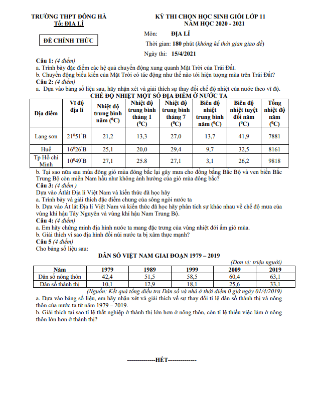 THI247.com sưu tầm và giới thiệu đến bạn đọc nội dung đề thi và bảng đáp án / hướng dẫn giải Đề thi HSG Địa lí 11 lần 1 năm 2023 – 2024 trường THPT Ngô Gia Tự – Vĩnh Phúc.
