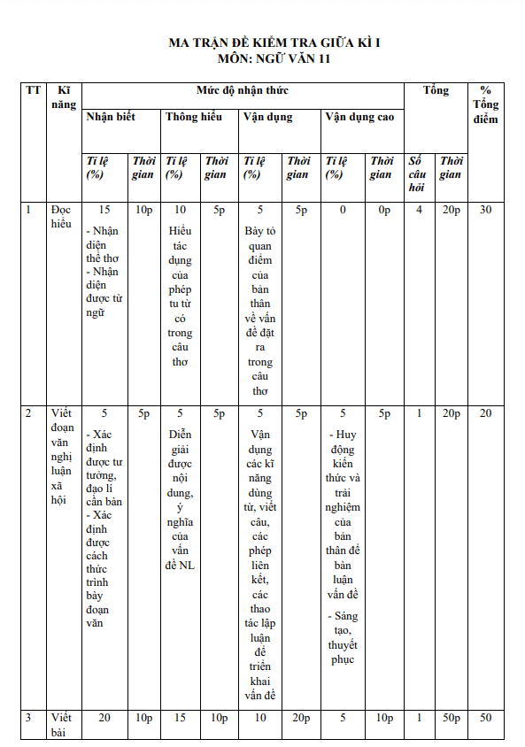 Đề thi Ngữ Văn 11 giữa kỳ 1 năm 2023 – 2024 trường THPT Ngô Quyền – Hà Nội
