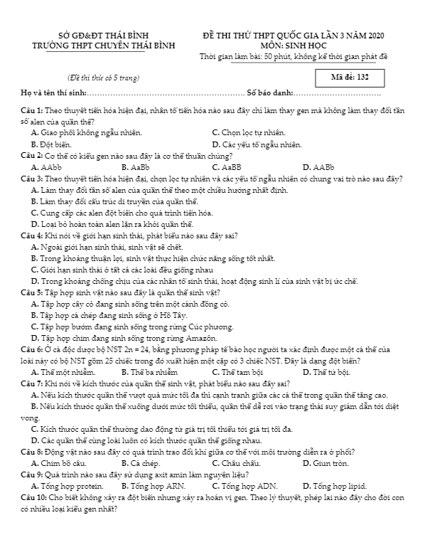 Vừa qua, sở Giáo dục và Đào tạo tỉnh Ninh Bình đã tổ chức kỳ thi thử THPT 2020 môn Sinh học lần 1, nhằm kiểm tra chất lượng ôn tập của học sinh khối 12 sau giai đoạn đi học trở lại.