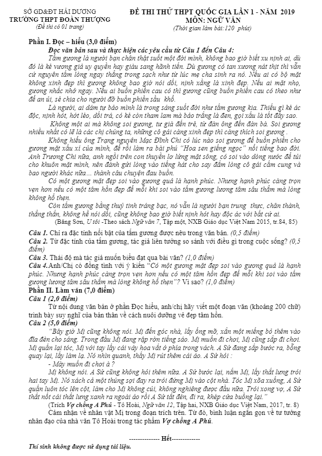 Trích dẫn đề thi thử THPT Quốc gia 2019 môn Ngữ Văn hội 8 trường chuyên lần 3: