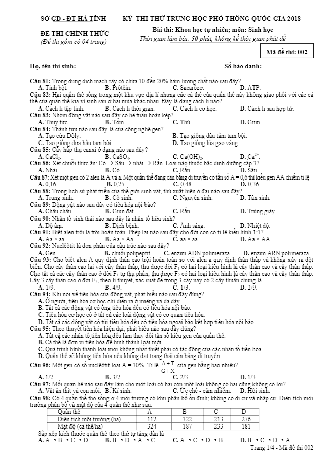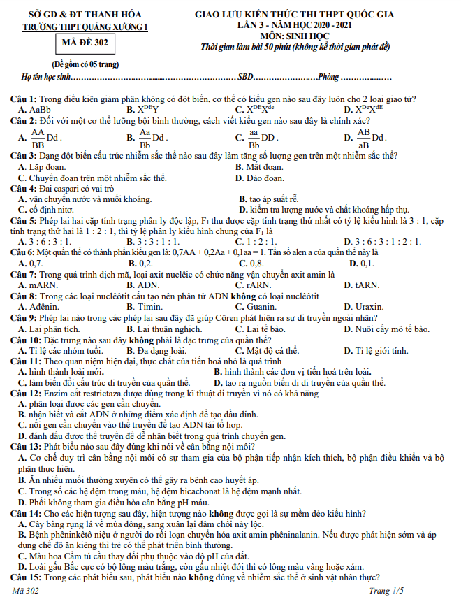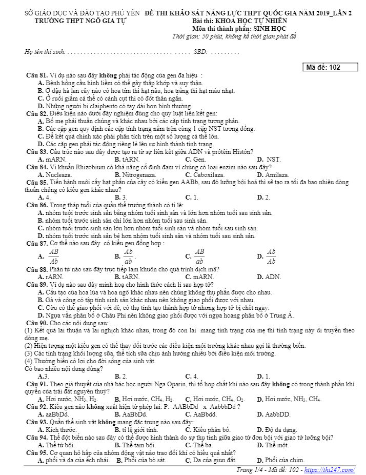 THI247.com giới thiệu đến bạn đọc PDF đề thi + bảng đáp án đề thi thử tốt nghiệp THPT Quốc gia năm học 2020 – 2021 môn Sinh học lần 1 trường Lý Thái Tổ, tỉnh Bắc Ninh.