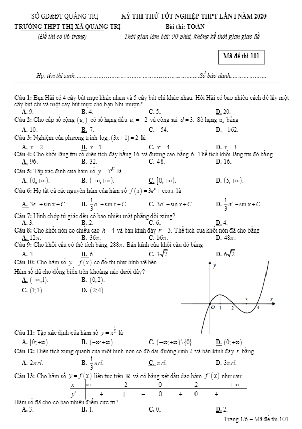 Trích dẫn đề thi thử tốt nghiệp THPT năm 2020 môn Toán sở GD&ĐT Cà Mau:
