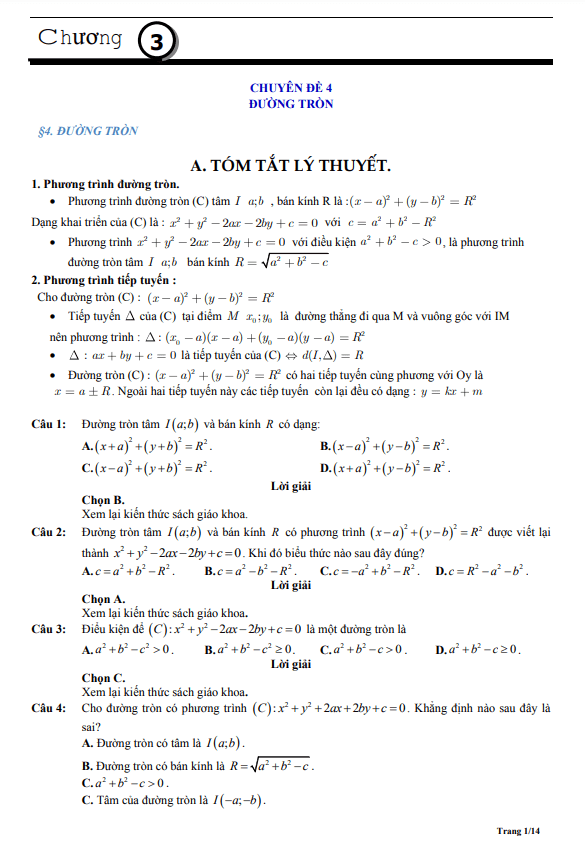 Tài liệu gồm 14 trang, tổng hợp kiến thức và bài tập trắc nghiệm phương trình đường thẳng trong chương trình môn Toán lớp 10.