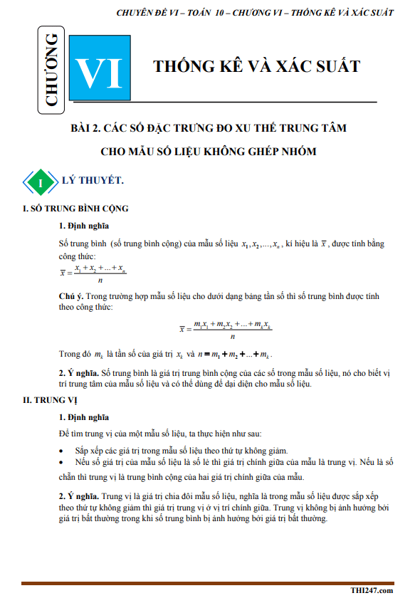 THI247.com sưu tầm và giới thiệu đến bạn đọc tài liệu chuyên đề các số đặc trưng đo mức độ phân tán của mẫu số liệu môn Toán 10 bộ sách Chân Trời Sáng Tạo.